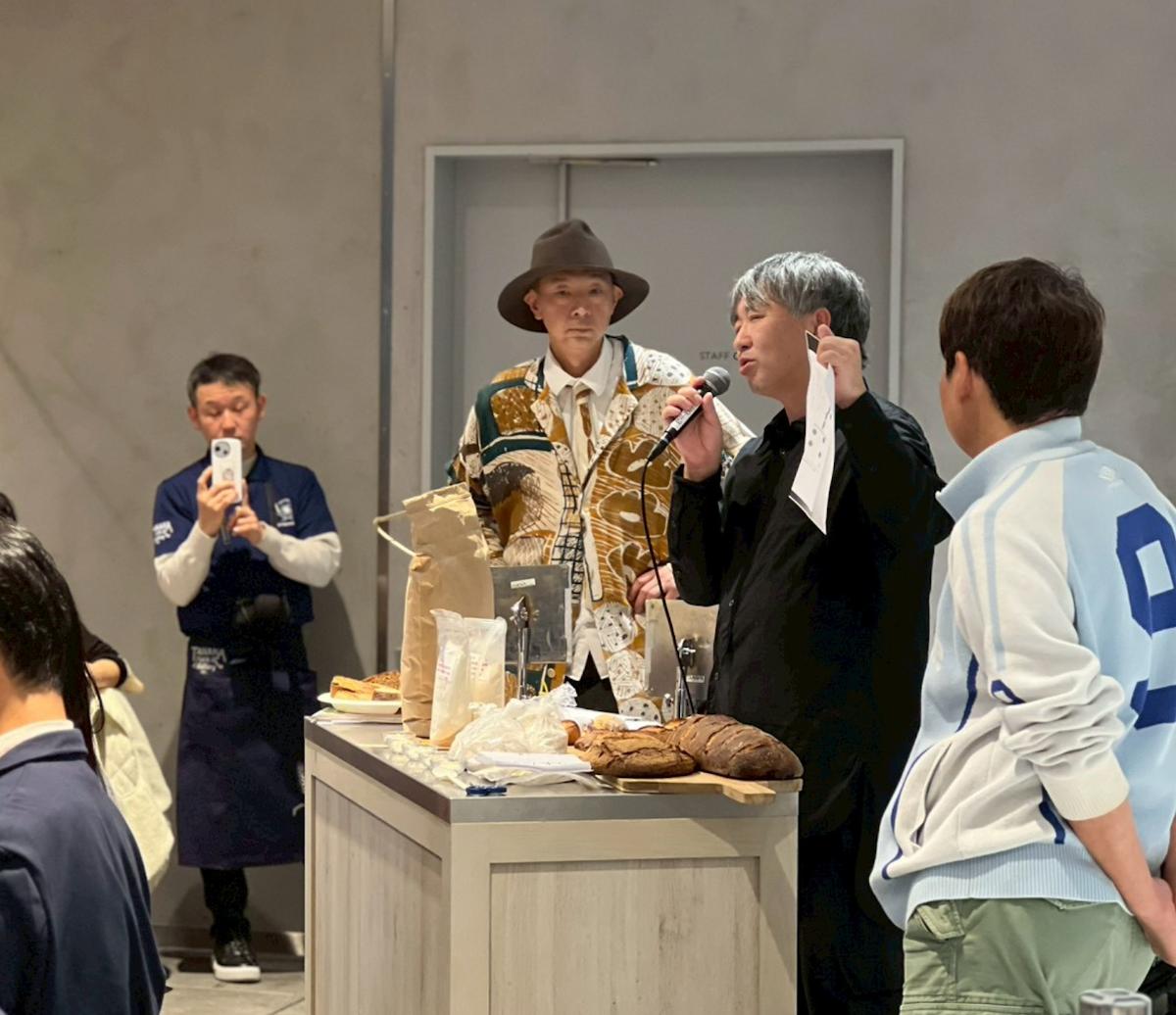 また、生産者、製粉会社という普段お客様に届きにくい人たちの言葉を届けるブース「新麦コレクティブ」では、CROFT BAKERY久保田シェフ、C'EST UNE BONNE IDÉE! 有形シェフ、SHŌPAIN ARTISAN BAKEHOUSE平山シェフが、はじめての試みゆえにまったく手探りでしたが、素材の個性を届けるため試食のパンも作り、声をからせて生産者、製粉会社と麦のストーリーを語り合いました。